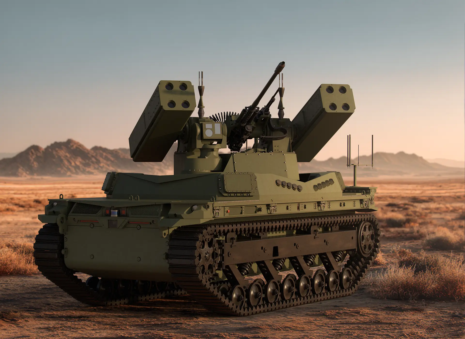 The Tracked Robot 10-ton (TRX) is an autonomous or remote-operated counter-UAS platform designed to defend forward positions without putting air defenders at risk. Built for high-risk environments and border protection missions, TRX can be positioned remotely or operated via tele-op, delivering persistent protection exactly where it’s needed, without exposing personnel to threat.